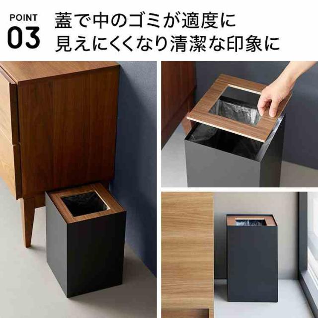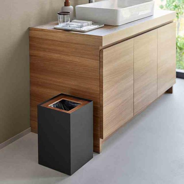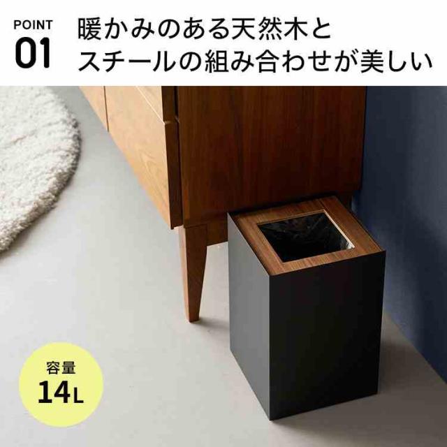 山崎実業 トラッシュカン リン 角型 14L 公式 RIN 10594 10595 ブラウン ナチュラル ゴミ箱 おしゃれ 袋が見えない ダストボックス ごみ箱 隠せる シンプル スチール スタイリッシュ ホテルライク スクエア 四角 かっこいい 袋 ウッド オフィス リビング インテリア 高級感