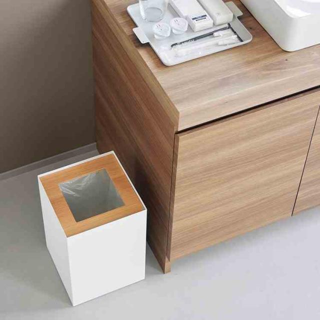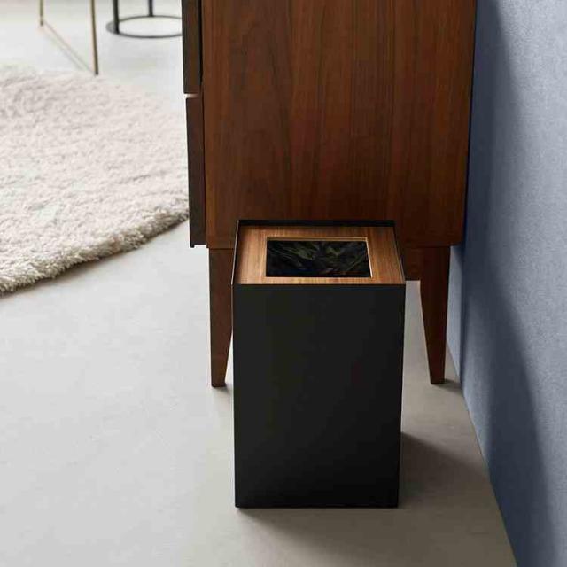 暖かみのある天然木とスタイリッシュなスチールの組み合わせが美しい、スクエア型トラッシュカンです。天然木の蓋は簡単に取り外せ、中のゴミを見えにくくし、清潔で整った印象に。内側のストッパーリングで、ゴミ袋もすっきり隠せます。