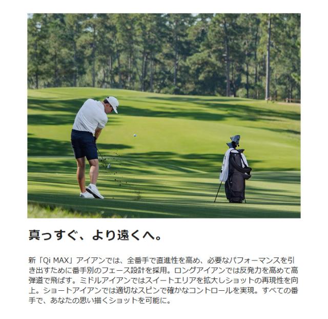 ゴルファーが求める寛容性・直進性・飛距離…そのすべてを追求し、狙ったところに高弾道でしっかり飛ばせる全く新しい「Qi MAX LITE」アイアン。今作では、さらに打音、打感にこだわり、フェースのセンターを外したショットでも心地よく感じられる設計に。飛距離に悩むベテランゴルファーから、ゴルフを始めたばかりの方まで、スコアメイクの武器になるアイアン。