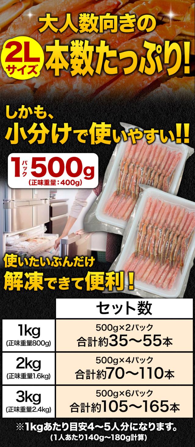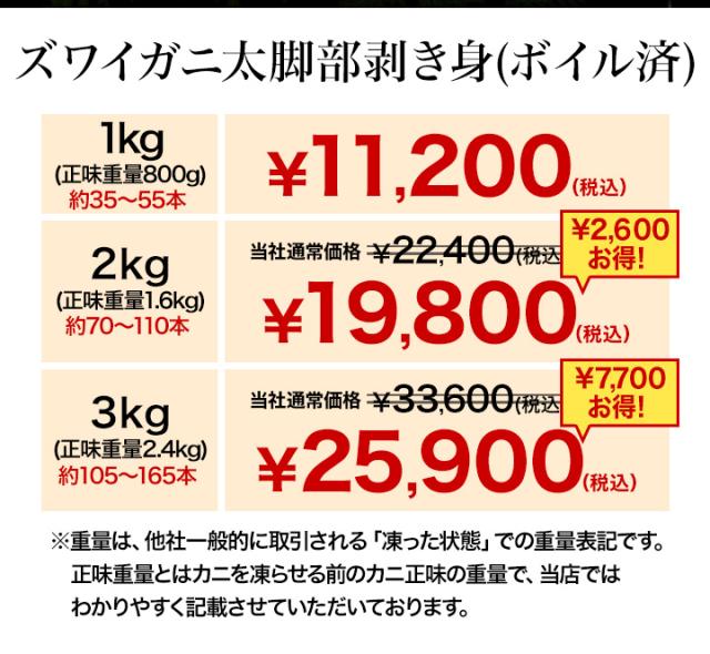 約35〜55本 1kg 約2Lサイズ ズワイガニ太脚剥き身 ボイル済 カットズワイ ずわいがにカット済 カニむき身 全国送料無料