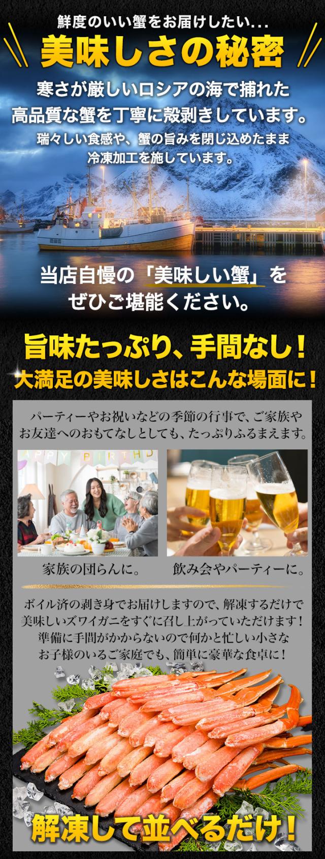 【その他】かに 蟹 カニ ズワイガニ ずわいがに ズワイ蟹 ずわい蟹 ズワイ 本ズワイガニ 本ずわいがに 本ずわい 本ズワイ 棒肉 脚肉 足肉 太脚 太脚部 かにすき 蟹しゃぶ 蟹すき 蟹鍋 かに鍋 カニ鍋 焼きガニ 焼き蟹 焼きがに 天ぷら コロッケ グラタン パスタ 雑炊 味噌汁 カニ汁 かに汁 蟹汁剥き身 らっきょ付 ボイル ボイル済み 冷凍 解凍 パック 箱 ボックス セット 詰め合わせ 福袋