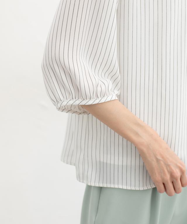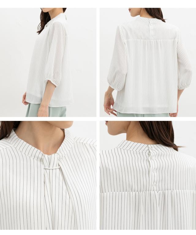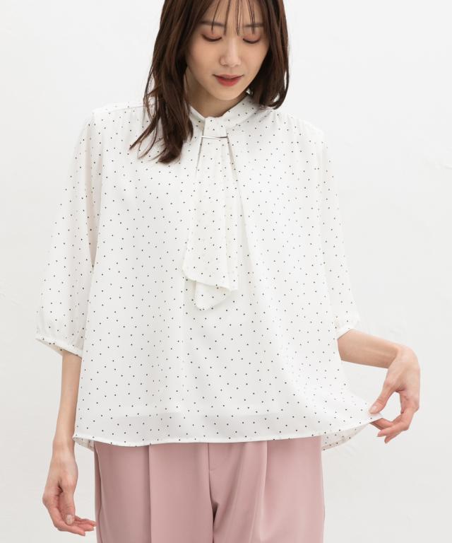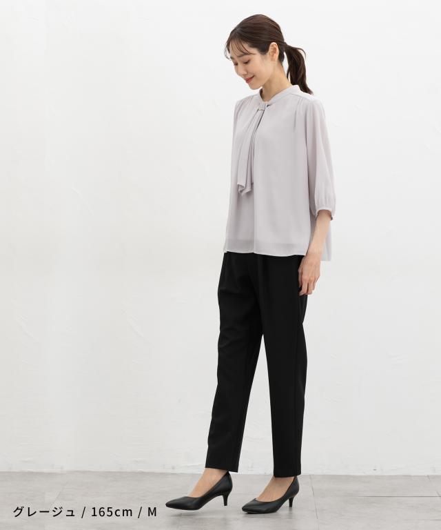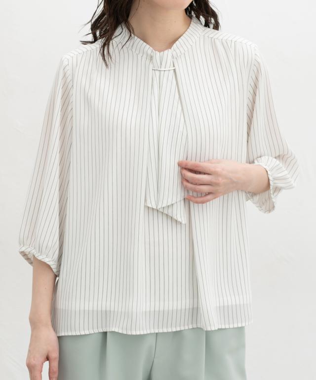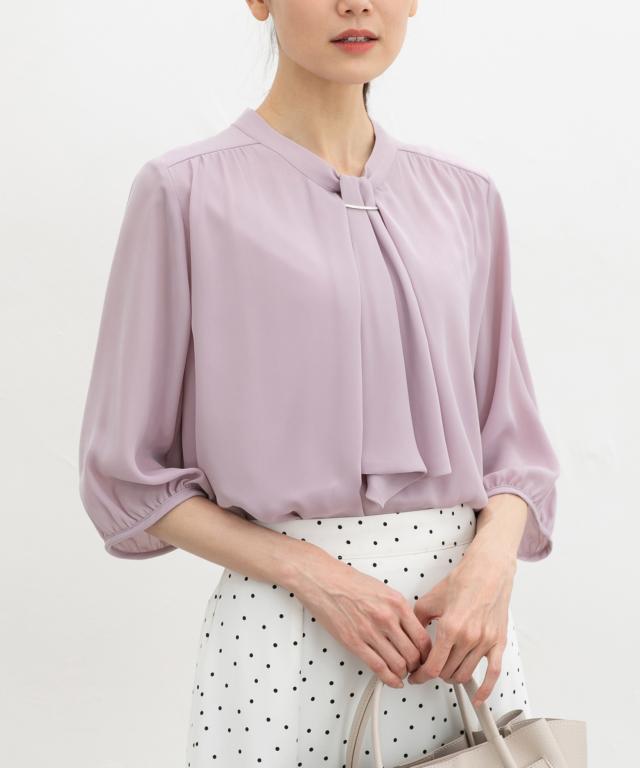 【商品名】6分袖アクセ付ボウタイブラウス