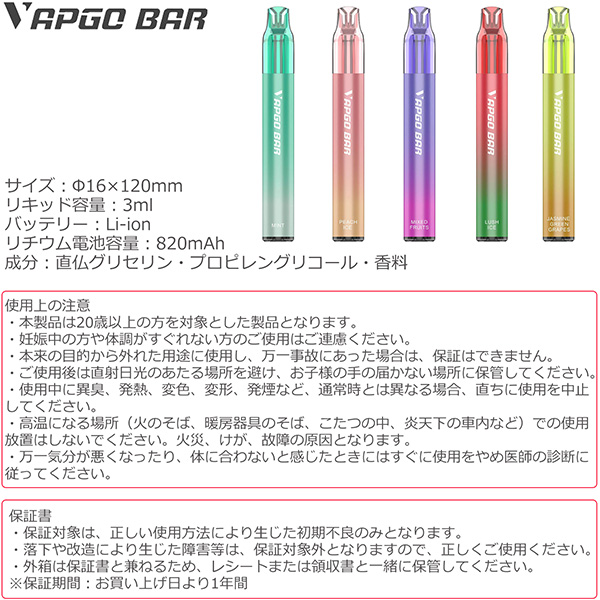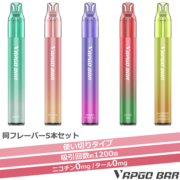 【同フレーバー5本セット】使い捨て シーシャ VAPGO BAR 電子タバコ ベイプ 禁煙グッズ ニコチン0 ニコチンゼロ タール0 タールゼロ 使い捨て オートパフ