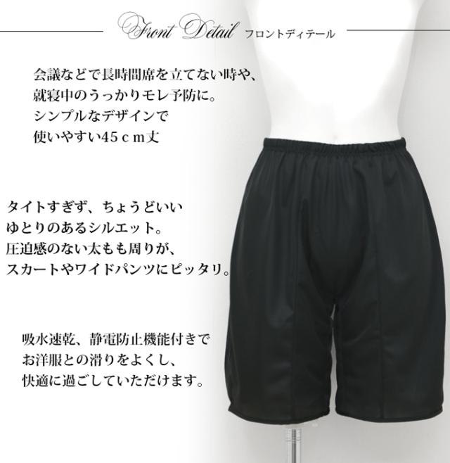 日本製 サニタリー ペチパンツ 45cm丈 ペチコート 防水布 汚れない 整理 漏れ モレ 安心 キュロット パンツ 下着 静電気防止 静電 吸水 速乾 レディース 肌着 対策 インナー 股ずれ 防止 ゆったり ひざ丈 透け防止 黒 透けない カバー 下着透け対策 春 夏 秋 冬【mail】