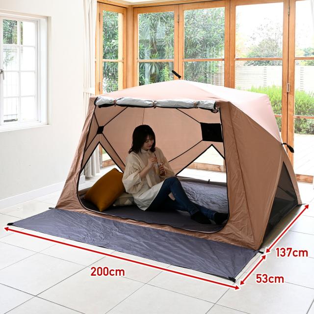 | 本体サイズ | (テント)幅200×奥行190×高さ128cm 重量3.9kg (ジョイントシート)180×130cm |