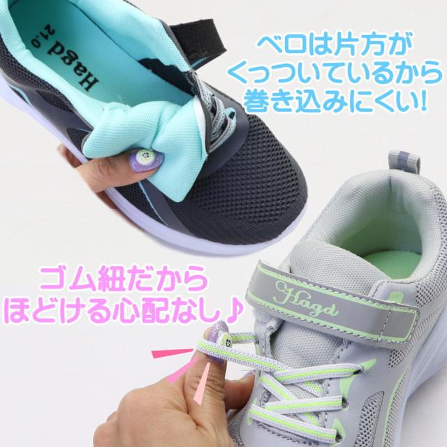 マジックテープと結ぶ必要がないゴムの靴紐だから簡単に脱ぎ履きができます。