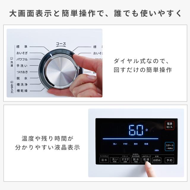 | 商品説明 | ●電源:AC100V(50/60Hz) ●消費電力:220W(洗濯時)、1150W(乾燥時)、980W(温水時) ●標準洗濯容量:10kg ●標準乾燥容量:5kg ●標準使用水量:70L(洗濯時)、109L(洗濯+乾燥時) ●左開き ●コース(洗濯):標準・おいそぎ・パワフル・手洗い・つけおき・脱水 (洗濯+乾燥):標準(洗乾)・おいそぎ(洗乾)・パワフル(洗乾)・毛布・おやすみ・部屋干し (乾燥):乾燥・あたたか (お手入れ):槽洗浄・槽乾燥 ●操作しやすいダイヤル式 ●操作部は視認性の高い液晶表示 ●高温洗浄で清潔長持ち ●予約タイマーで洗濯の終了時間を自由に設定可能 ●メーカー保証:1年 ※組立設置サービスに関する共通の注意事項 ・お支払方法として「代金引換」はご利用いただけません。ご注意ください。 ・開梱作業・組立設置作業に必要なスペースの確保を事前にお願いいたします。 ・あらかじめ設置場所の確定をお願いいたします。また、その際には商品完成サイズを必ずご確認ください。 ・商品梱包サイズと搬入ルートの確認。以下の搬入ルートにご注意ください。 ・「入口の間口(幅)と高さ」※ドアの取り外しは行っておりません。 ・「エレベーター入口と内部の幅、奥行、高さ」※商品とともに2名の配送員が入るスペースが必要となります ・ご注文時点でお届け希望日のご指定はできません。 ・お届けの目安は「ご注文日から約4日から6日後」となります。 ・ご注文日の1-2営業日以内に当店より出荷手配をさせて頂きます。その後、さらに1-2営業日以内に運送会社のアートセッティングデリバリーより配達予定についてお電話を差し上げますので、その際に配送日時の調整をお願いいたします。 ・ ※土、日、祝日のご注文は翌営業日のご注文とさせていただきます。 ・ ※年末年始、新生活シーズン、お盆、ゴールデンウィークの期間、また大口のご注文、およびご注文内容に不明な点がある場合など、ご希望日にお届けできない場合があります。 ・配送時に下記が判明した場合、別途追加費用の請求もしくは実費相当額のキャンセル料をお客様にご負担いただきますのでご注意ください。 ・小型トラックが通行できない道路に面している住宅にお届けの場合 ・駐車場など一時停止できる環境がない住宅にお届けの場合 ・窓からの搬入およびつり上げ作業が必要な環境の住宅にお届けの場合 ・組立設置場所の建物管理上の制約等により作業スケジュールおよび作業内容が変更となる場合 ・申込み時にお伝えいただいた内容と現況が異なることにより作業に大幅な遅延が生じた場合 ・搬入経路や組立作業スペースの事情により再度のお届け、作業が必要となった場合 |