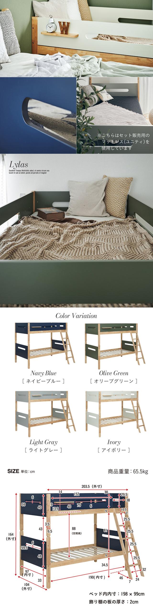 二段ベッド 大人用 マットレス付き 子供 分離 シングルベッド すのこ マットレス シングル 黒 ブラック 2枚セット Lylas(ライラス)+Unity(ユニティ) 4色対応 2段ベット すのこ おしゃれ 子供部屋