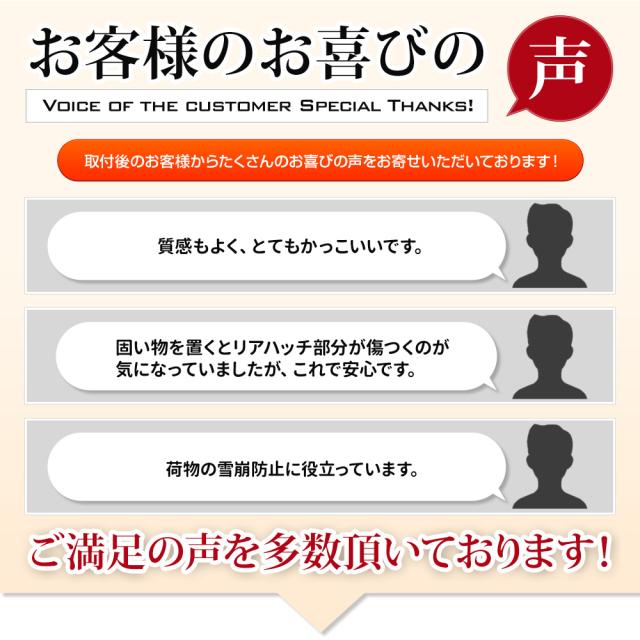 ■重すぎるものをあまり収納しないようにお願いします。 ■保護マットとしてご使用いただけますが、強い衝撃を与えると傷が付く恐れがあります。 ■汚れた場合は、濡れたタオルで拭いてください。 ■車種専用設計です。他の車種への流用はおやめください。 ■本製品をお車に設置する際、取付向きが間違え無い事を確認した上で取付を行ってください。 ■本製品の誤った取付、改造してご使用などの事故や故障、破損等につきましては当社では一切その責任保証は負いかねます。 ■作業時の破損やキズ、事故等につきましては保証は一切いたしません。 ■周辺機器や取り付け工賃など、商品以外の保証は一切いたしません。 また、分解・改造されております場合も保証対象外となりますので、分解・改造をされないようにしてください。 ■不具合等がございましたらご購入サイトまでご連絡ください。 |