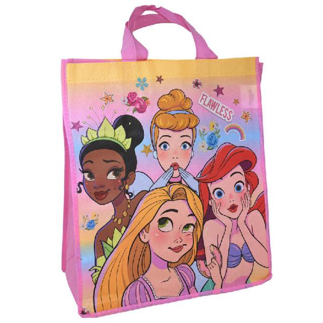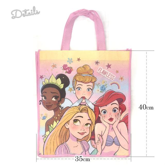 送料無料/ 不織布バッグ ハンドバッグ ディズニー プリンセス エコバッグ Lサイズ キャラクター 手提げ袋 作品収納バッグ マチ付き トートバッグ