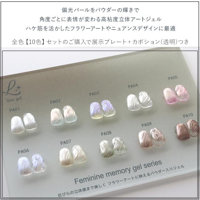 ペーストジェル フェミニンメモリージェル カラージェル ジェルネイル 高粘度ノンワイプアートジェル PAシリーズ 立体アート向け 全10色セット LED UV対応