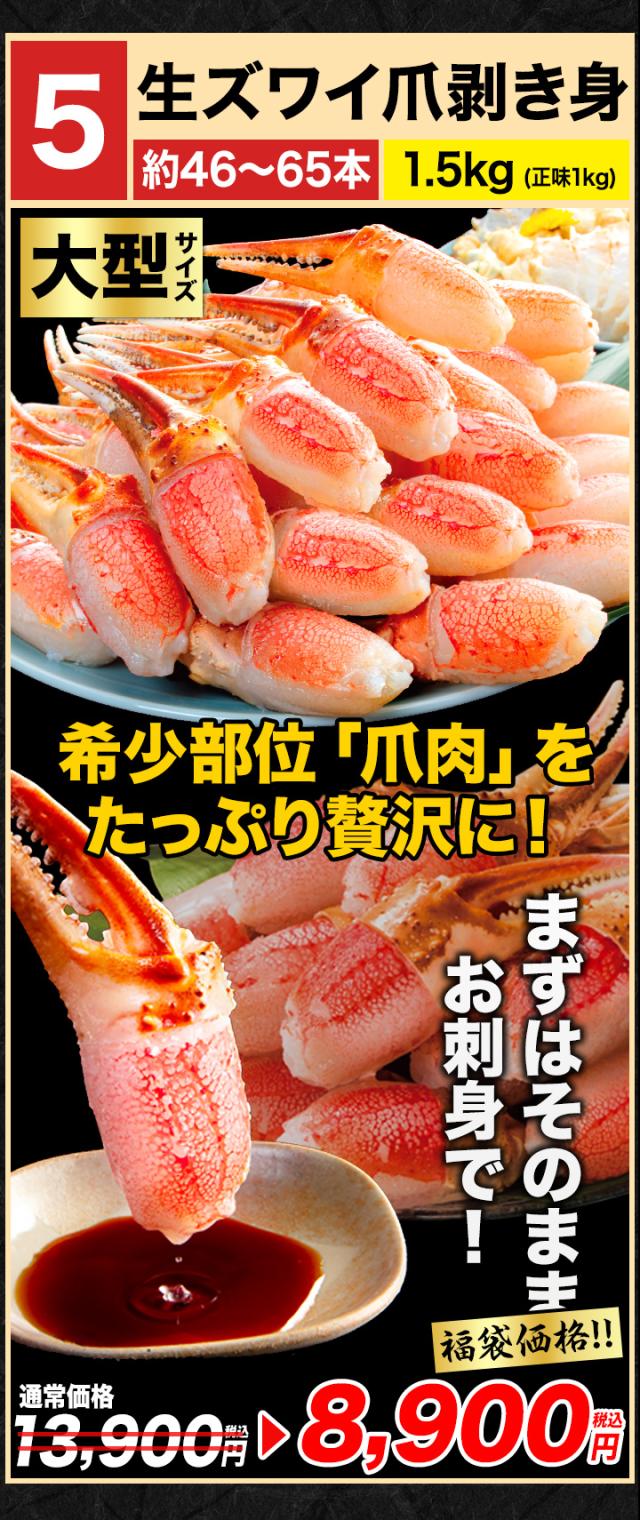 ズワイガニ大判振舞い福袋 7種類のズワイガニの中からランダムでお届け! ズワイガニ オオズワイガニ ずわいがに福袋 ズワイ肩付 生食可 ボイル済 カニ爪 生ズワイガニ 肩付脚 かに鍋 カニ 生ズワイ ズワイ 北海道産 カニパーティ カニガチャ 満足良品館 全国送料無料