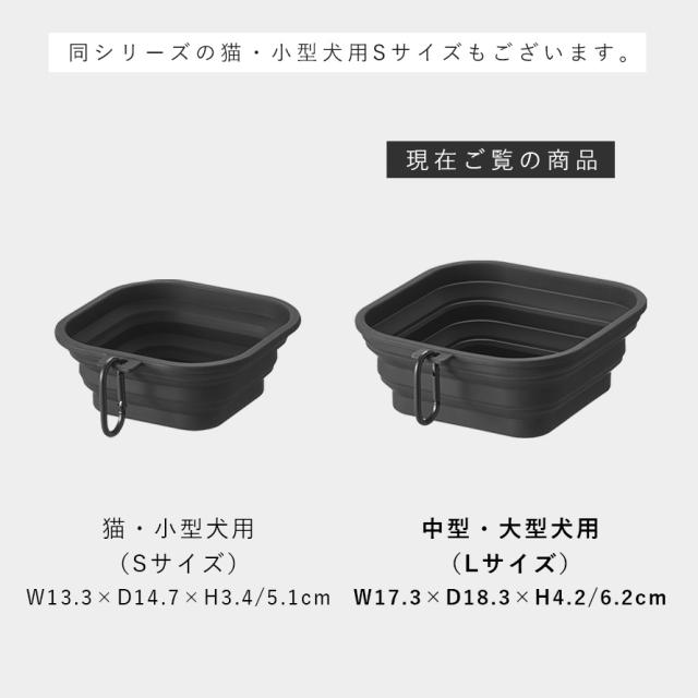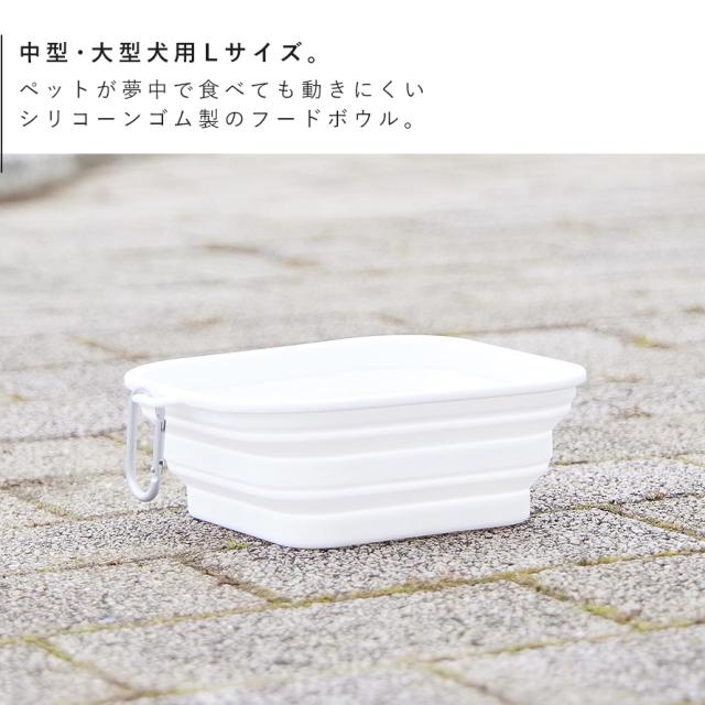 フタ付きで持ち運びに便利な、折り畳み式のペットフードボウルです。中型・大型犬用のLサイズ。