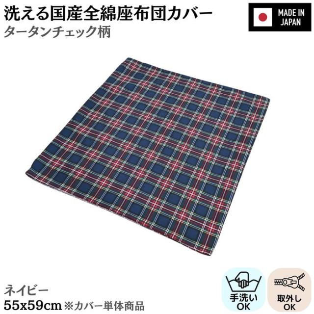 洗える国産全綿座布団カバー タータンチェック ネイビー 綿100% 日本製 ファスナー付き