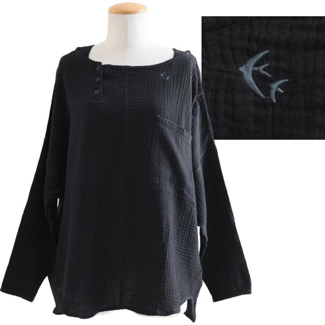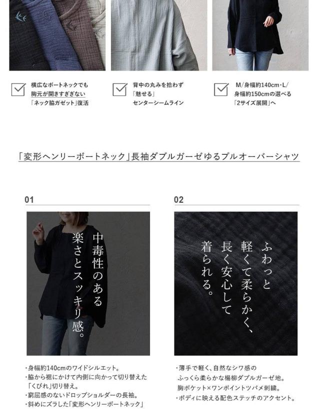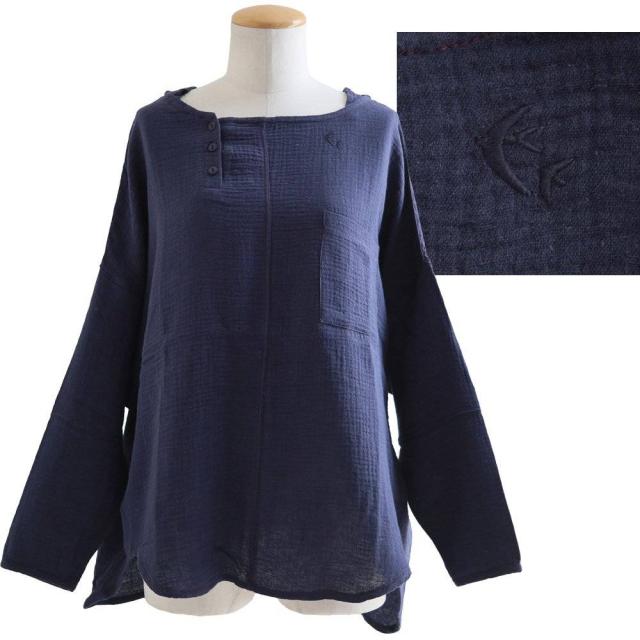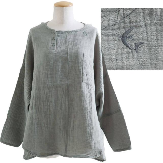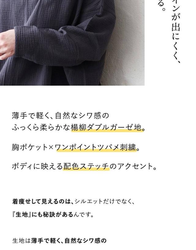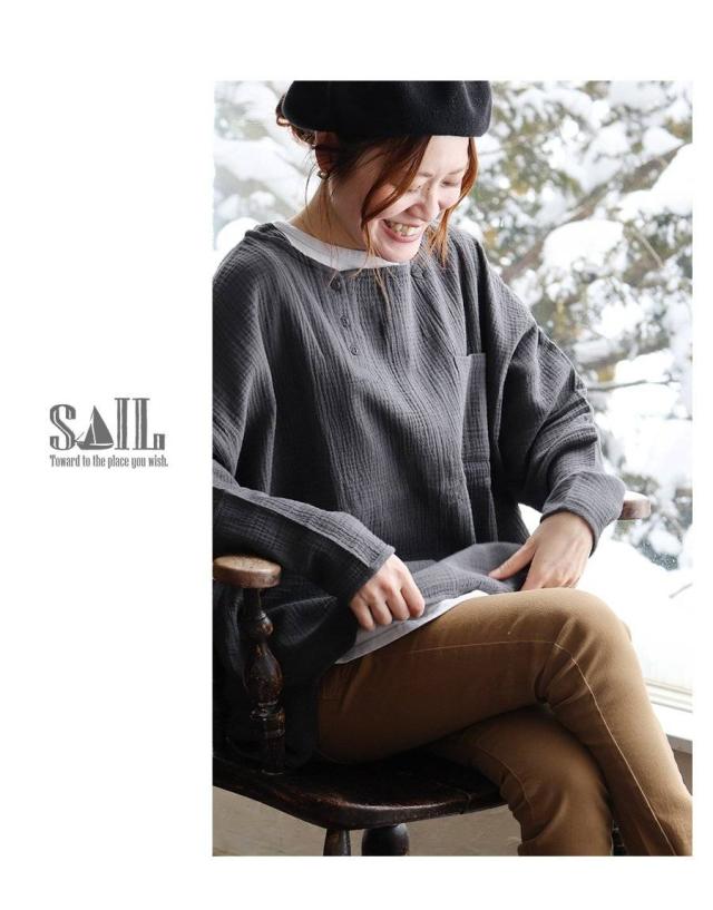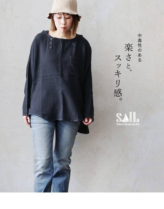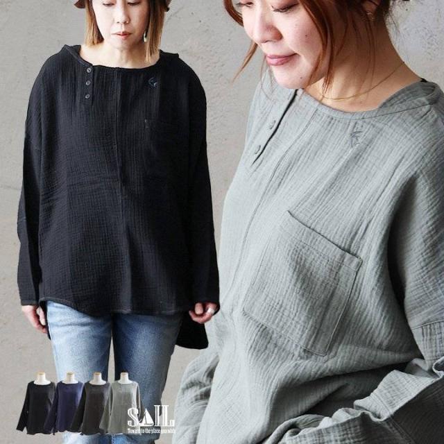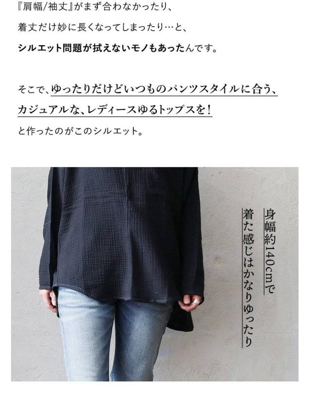 シャツ 長袖 プルオーバー ダブルガーゼ レディース 綿100 コットン 春 すっきり 着やせ ワイド ドルマンスリーブ ボートネック 切り替え 大きいサイズ ゆったり お尻 体系 カバー 吸湿 速乾 通気性 軽い 軽量 カジュアル パティ SAIL セイル