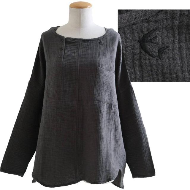 シャツ 長袖 プルオーバー ダブルガーゼ レディース 綿100 コットン 春 すっきり 着やせ ワイド ドルマンスリーブ ボートネック 切り替え 大きいサイズ ゆったり お尻 体系 カバー 吸湿 速乾 通気性 軽い 軽量 カジュアル パティ