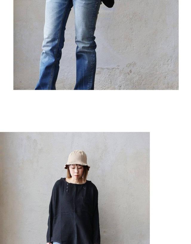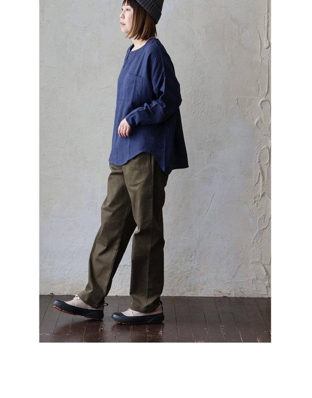 ・斜めにズラした「変形ヘンリーボートネック」のアクセント。