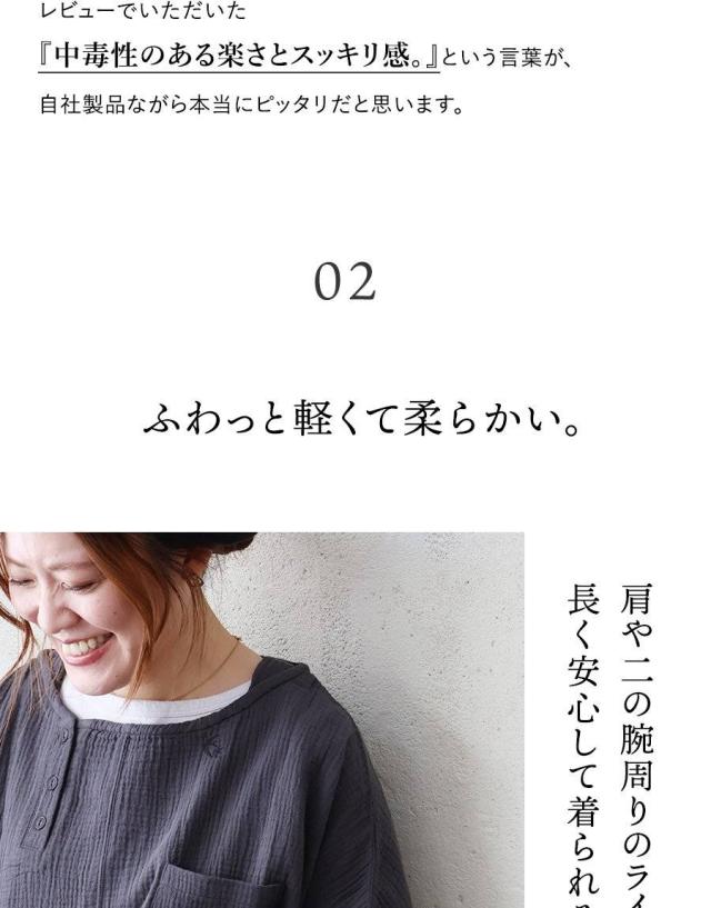 [ポイント02.]ふわっと軽くて柔らかく、長く安心して着られる。