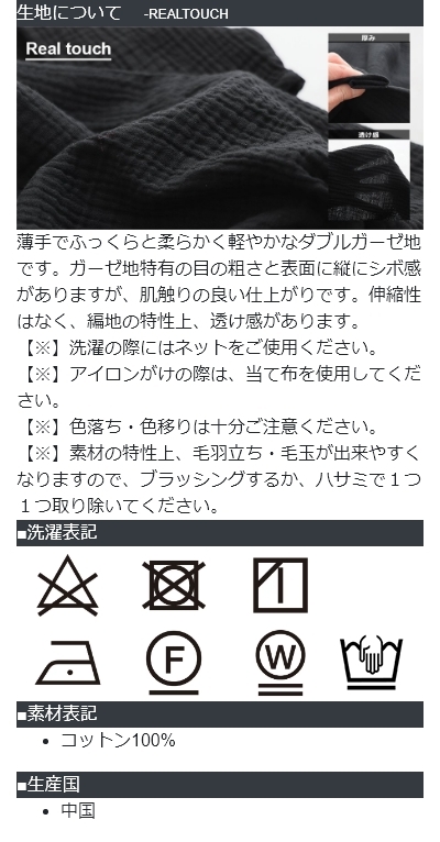 ・薄手で軽く、自然なシワ感のふっくら柔らかな楊柳ダブルガーゼ地。