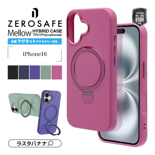 iPhone16 ケース カバー ハイブリッド ZEROSAFE Mellow MagSafe対応 マグネット充電 耐衝撃吸収 スタンド機能 スマホリング付き マグセーフ対応 ワイヤレス充電対応 ゼロセーフ メロウ TPUバンパーケース アイフォン スマホケース ラスタバナナ