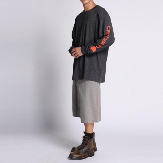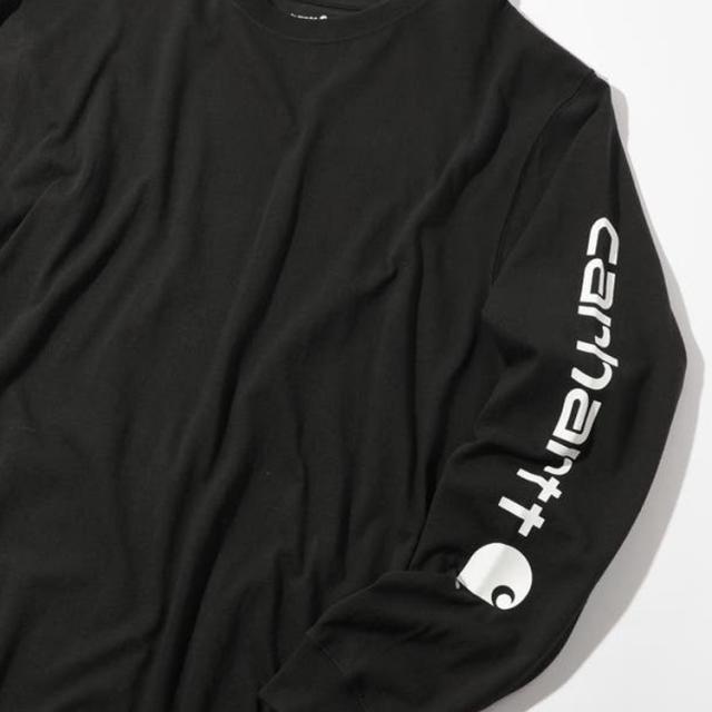 袖に大胆にあしらわれたCarharttロゴが印象的なロングスリーブTシャツ。
