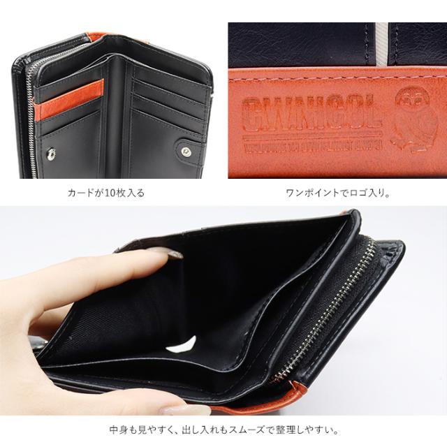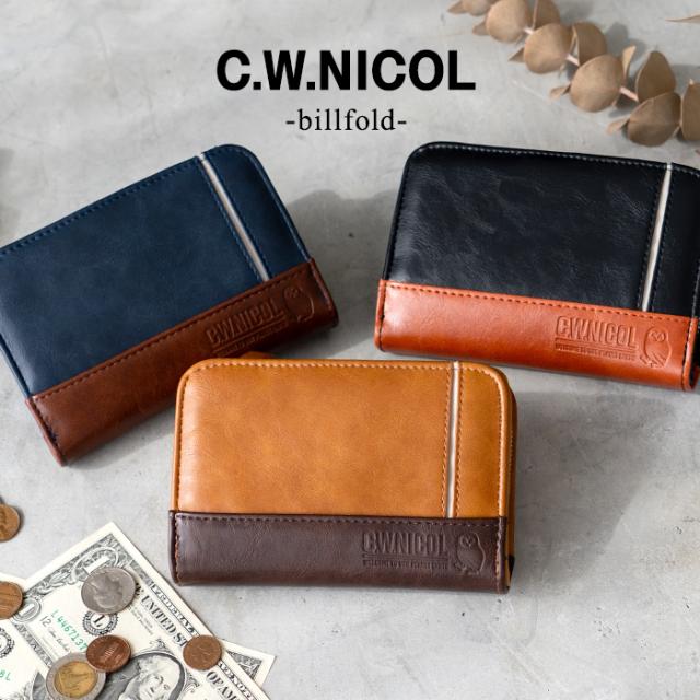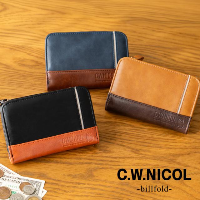 C.W.ニコル 財布 メンズ 二つ折り L字ファスナー フクロウ 縁起財布 フロントポケット付き 人気 おしゃれ ギフト プレゼント