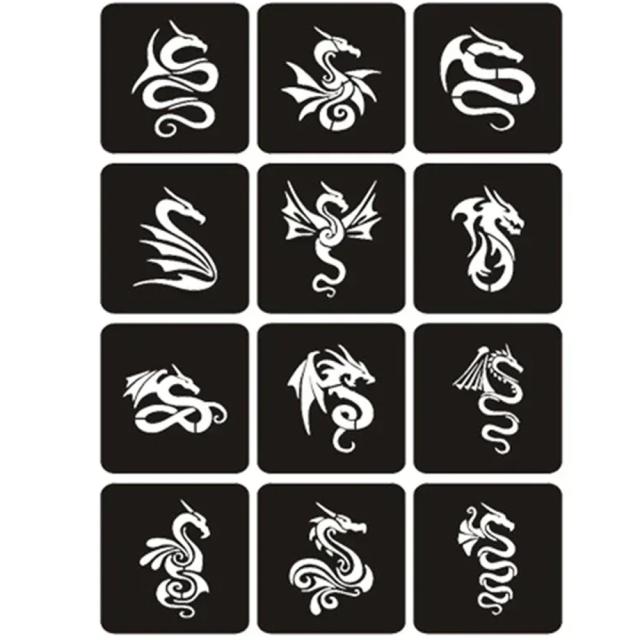 12枚のワンポイントに使える様々なデザインの竜をモチーフにした