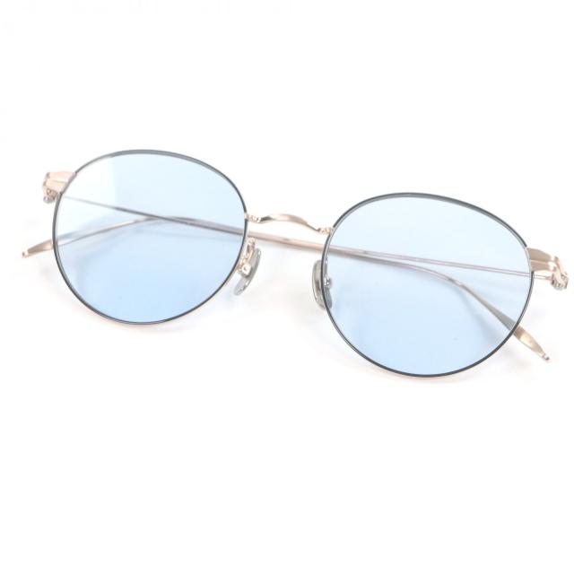 極美品□金子眼鏡 カネコガンキョウ KMS-12 ラウンドフレーム サングラス ピンクゴールド ブルーレンズ 箱・ケース付 日本製 51□20-145