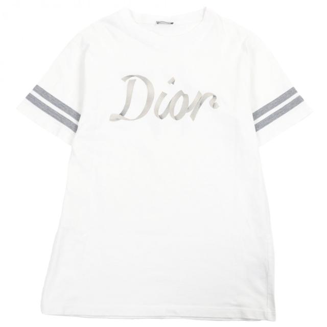 美品□DIOR ディオール オム 293J659A0554 コットン100% ロゴエンブロイダリー サイドライン 半袖Tシャツ 白 M イタリア製 正規品