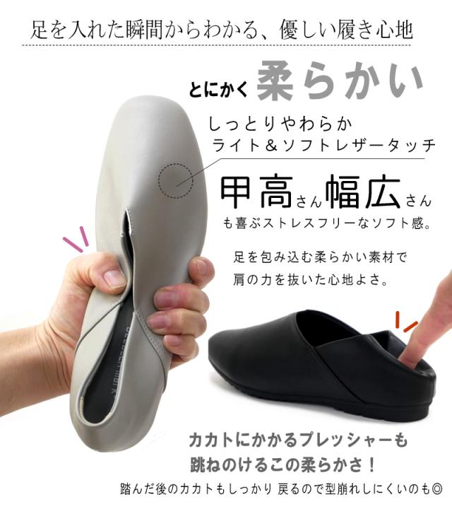 フラットシューズ レディース 歩きやすい カッター バレエシューズ ルーズ 軽い 柔らかい カカト踏める 2WAY リフレッシュウォーク フラットソール 耐滑 立体クッション 3E