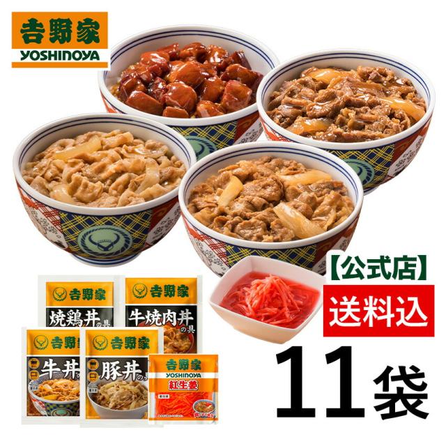 吉野家 公式 【冷凍】大人気5品11袋セット(牛丼4袋 豚丼 2袋 牛焼肉丼 2袋 焼鶏丼 2袋 紅生姜1袋) お試し おつまみ 昼ごはん 冷凍食品 仕送り