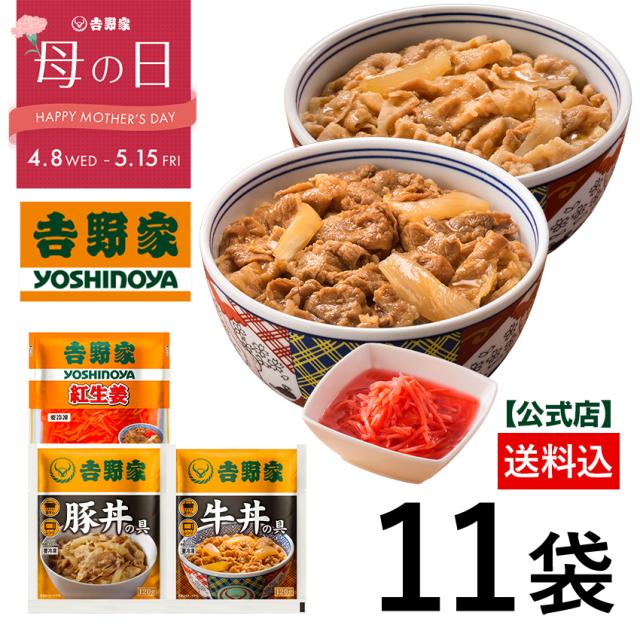 吉野家 公式 【冷凍】牛丼・豚丼食べ比べセット 各5袋+紅生姜1袋付 お試し サイドメニュー Thanksカード入り 母の日ギフト