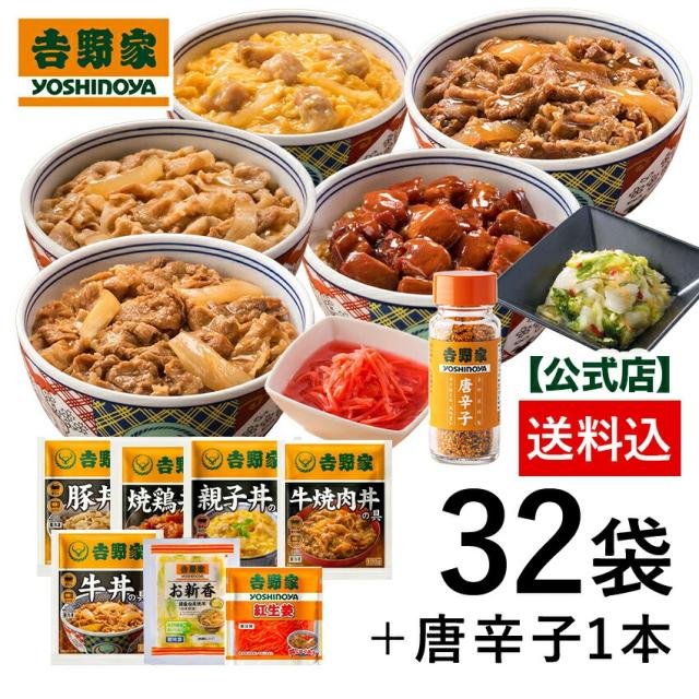 吉野家 公式 【冷凍】大人気まとめ買い32袋+唐辛子1本セット 仕送り 便利 夜食 おつまみ 昼ごはん ストック 時短 冷凍食品 お弁当 おかず クール宅急便