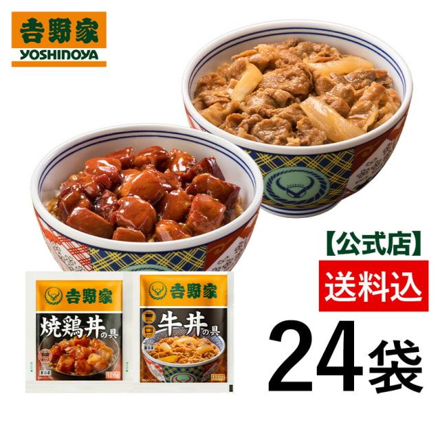 吉野家 公式 【冷凍】牛丼の具・焼鶏丼の具24袋セット(各12袋)お試し 昼ごはん 冷凍食品 お弁当 おかず クール宅急便 ギフトにも 仕送り 新生活