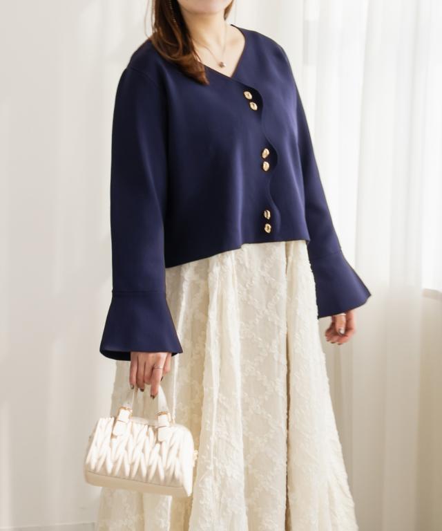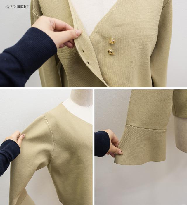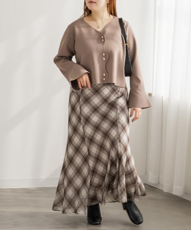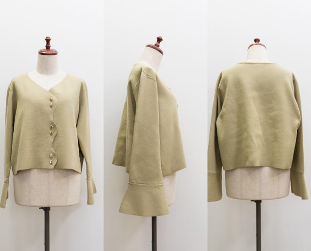 | 3Lサイズを着用してサイズ感はゆとりがあるのにすっきり見えるシルエットが嬉しいです!ピタッとしすぎないのが嬉しい♪フロントに並んだボタンが、コーデにさりげなく遊び心をプラスしてくれて可愛いです◎なみなみになったデザインも大人可愛いです!シンプルながらもアクセントが効いていて、コーデが華やかになります。生地は程よくハリのあるニットで、チクチクせず肌あたりも心地よかったです。丈感は裾を出してもちょうどよく、パンツにもスカートにもバランスよく合わせられました。 |
