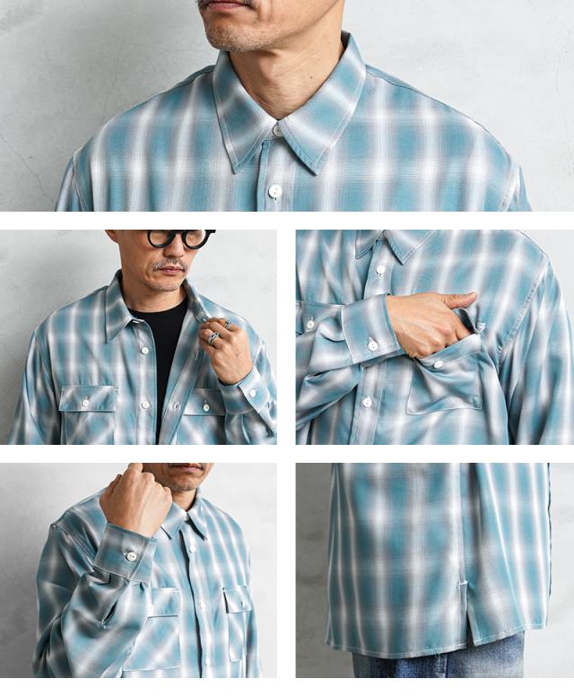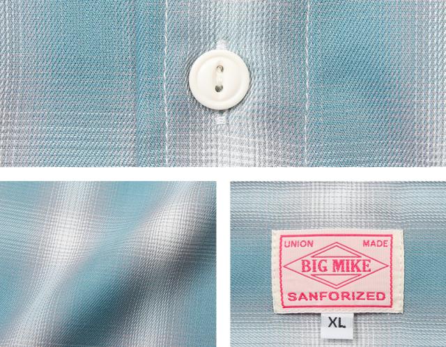 BIG MIKEから、着心地柔らかなレーヨンとポリエステル混紡のスリッド入り、オンブレチェックシャツが登場しました。レーヨンとポリエステルを混紡した素材を使用。レーヨンの柔らかさと吸湿性にポリエステルの速乾性と耐久性の両素材を活かした仕様でサラッとした着心地の良さが特徴です。2本針巻き縫いやフラップ付き胸ポケットなどヴィンテージライクなディテールが魅力的に仕上がっており、また猫目ボタンを採用しているので、糸がくぼみのところにあり擦れるのを防いでくれます。
