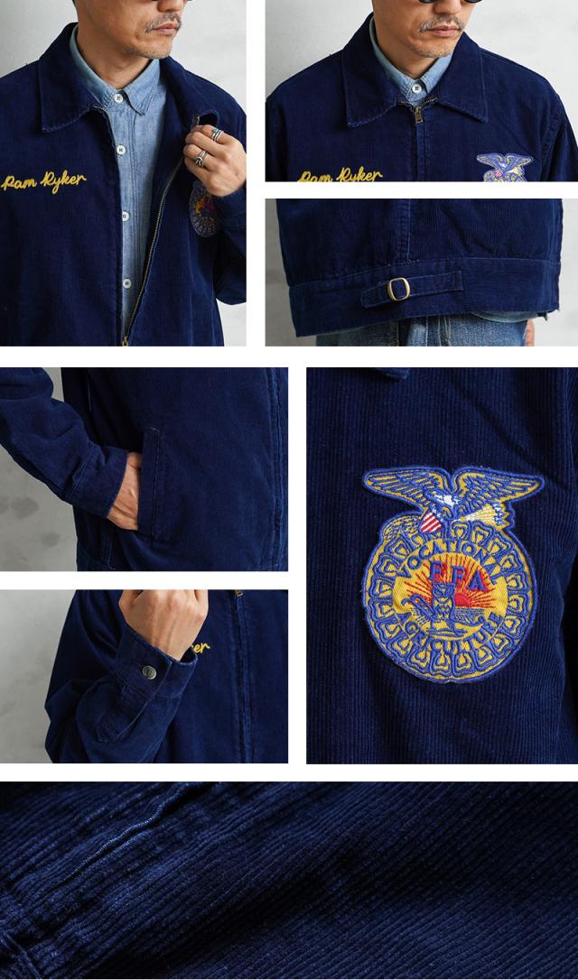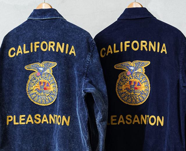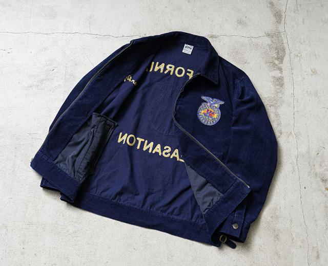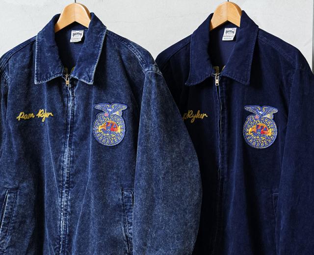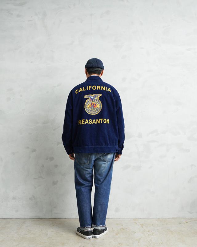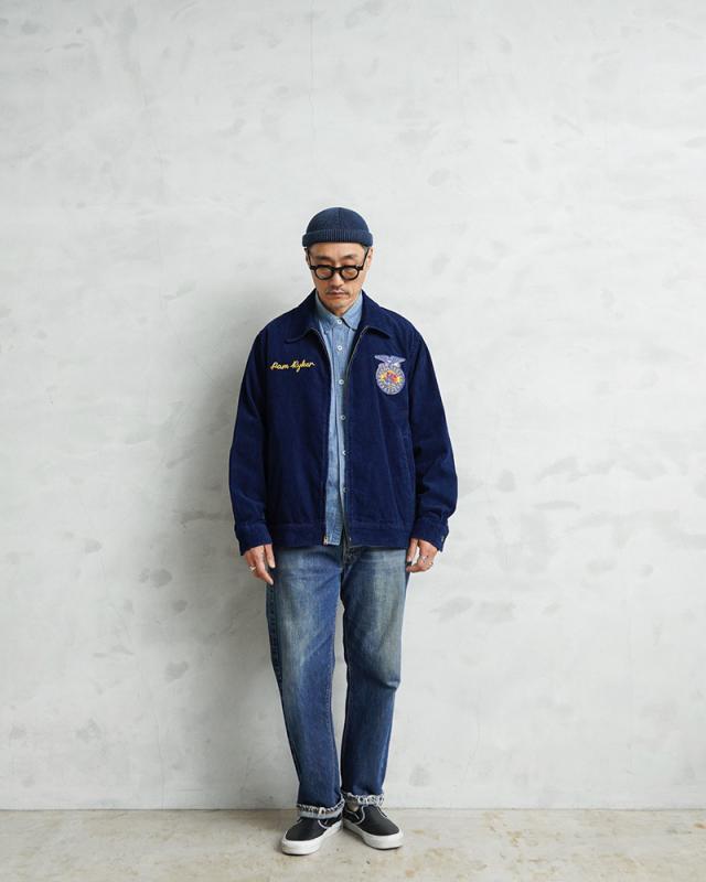 HOUSTONから細畝インディゴコーデュロイを使用したFFAジャケットが登場しました。FFA(Future Farmers Agriculture)ジャケットは1928年設立、アメリカの国立農業学校のユニフォームウェアで州ごとに違う刺繍、着用者の名前が施されているジャケットです。古着市場では人気と反比例して枯渇化が進んでおり、価格も高騰してきているFFAジャケットをHOUSTONオリジナルでサンプリングしています。