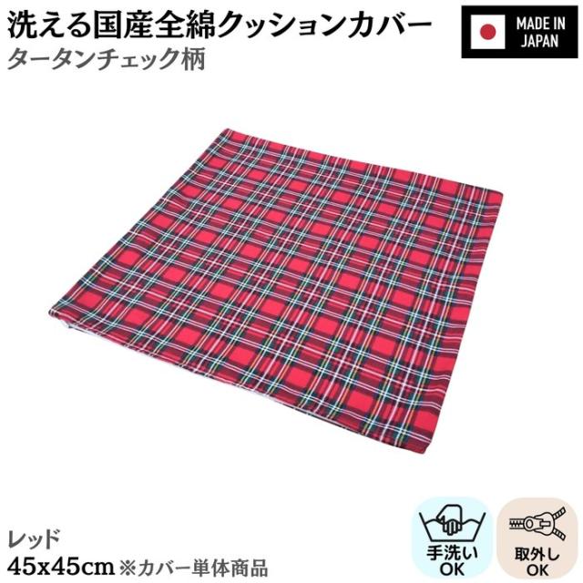洗える国産全綿クッションカバー タータンチェック レッド 綿100% 日本製 ファスナー付き