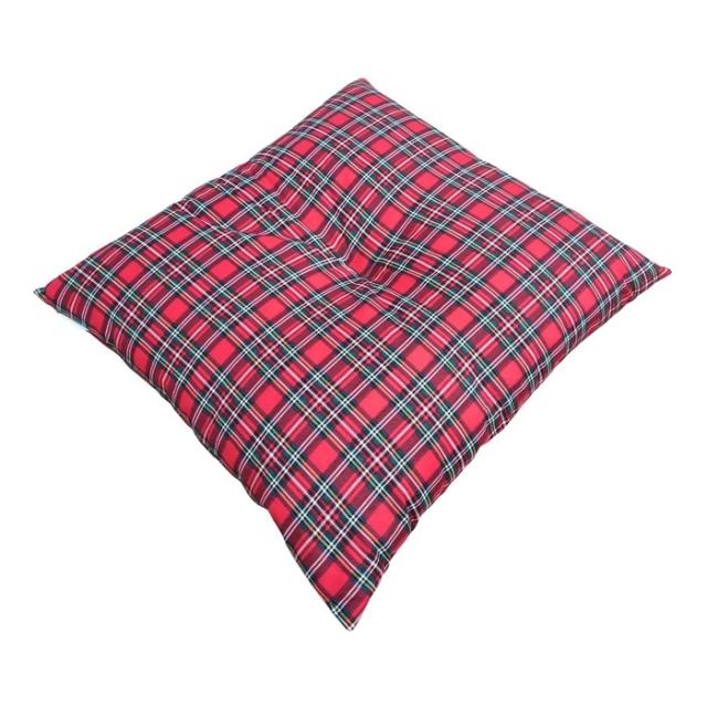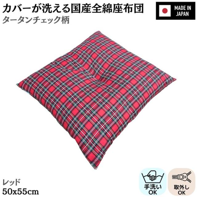 カバーが洗える国産全綿座布団 タータンチェック レッド 綿100% 日本製 国産わた入れ加工 ファスナー付き