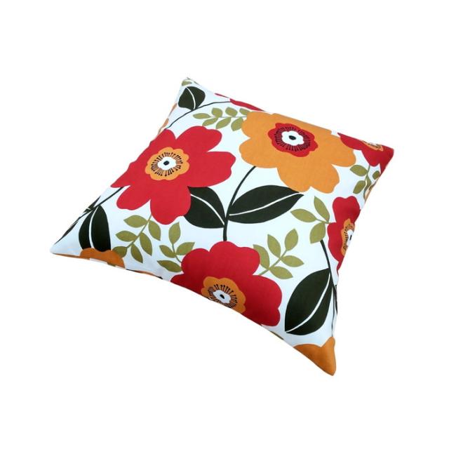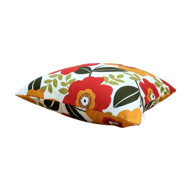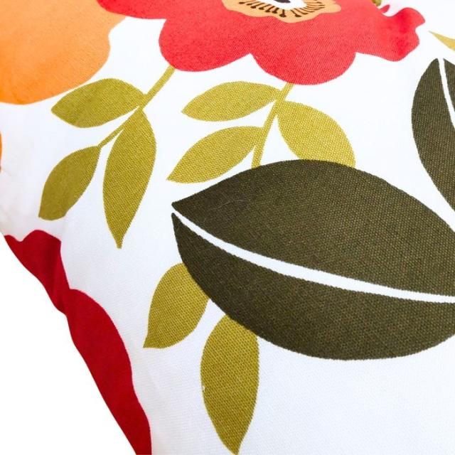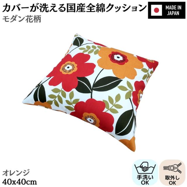 カバーが洗える国産全綿クッション モダン花柄 オレンジ 綿100% 日本製 国産わた入れ加工 ファスナー付き
