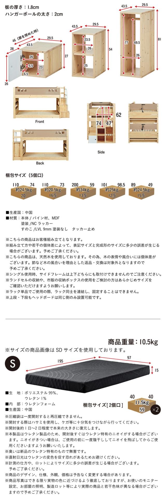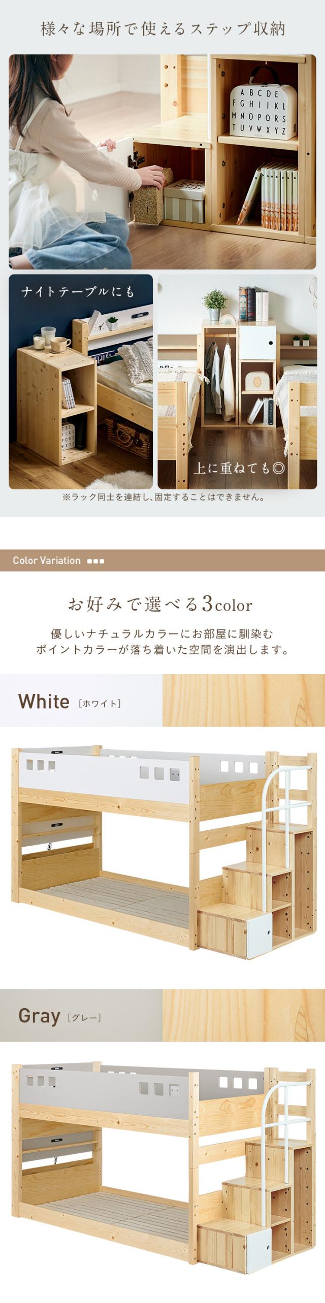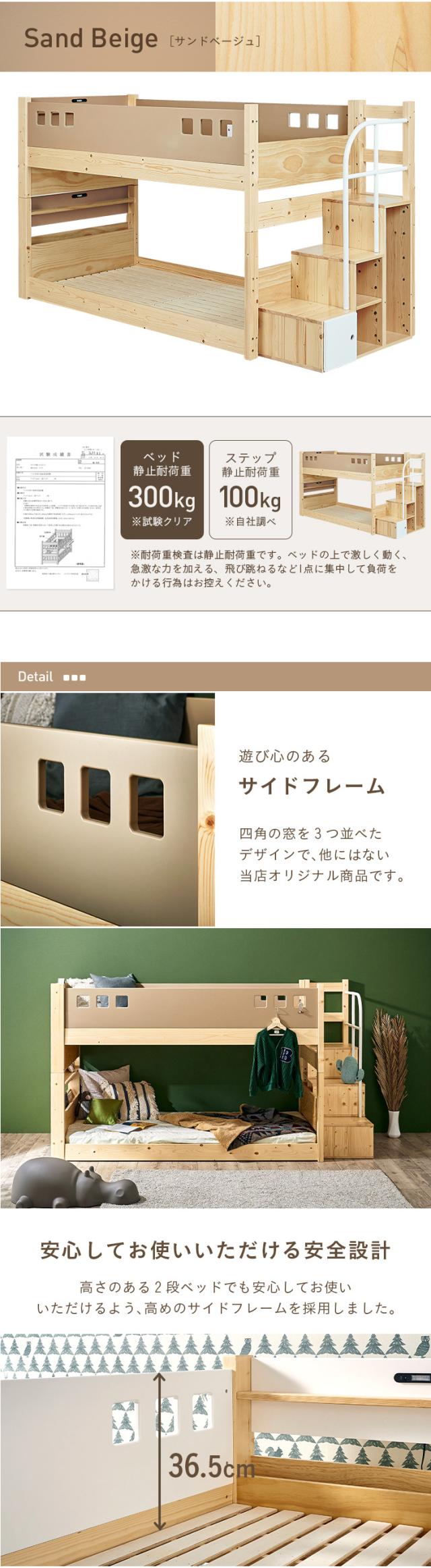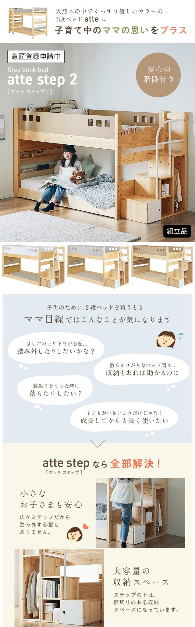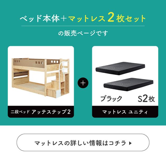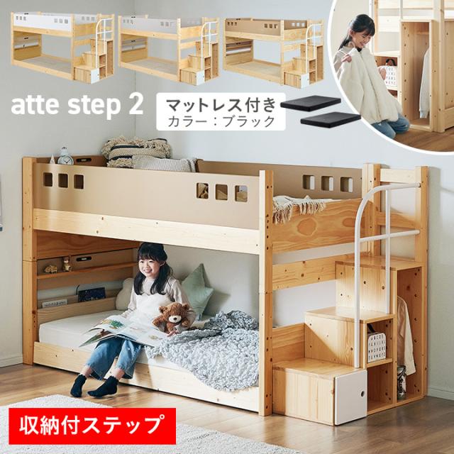 二段ベッド 大人用 マットレス 分離 子供 階段 コンセント マットレス付き シングル 黒 ブラック 2枚セット atte step2(アッテステップ2)+Unity(ユニティ) 3色対応 2段ベッド おしゃれ すのこ 子供部屋