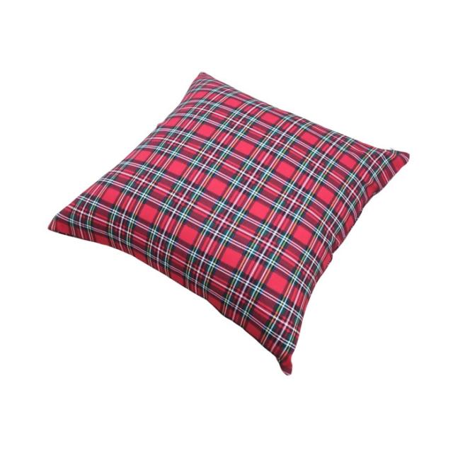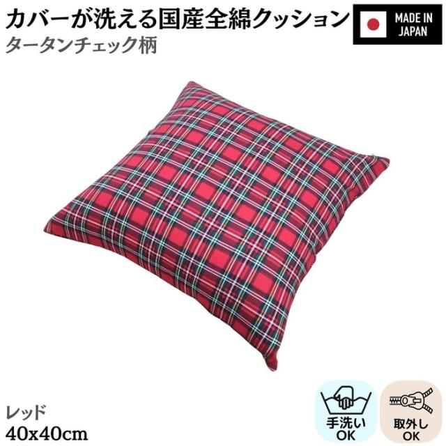 カバーが洗える国産全綿クッション タータンチェック レッド 綿100% 日本製 国産わた入れ加工 ファスナー付き