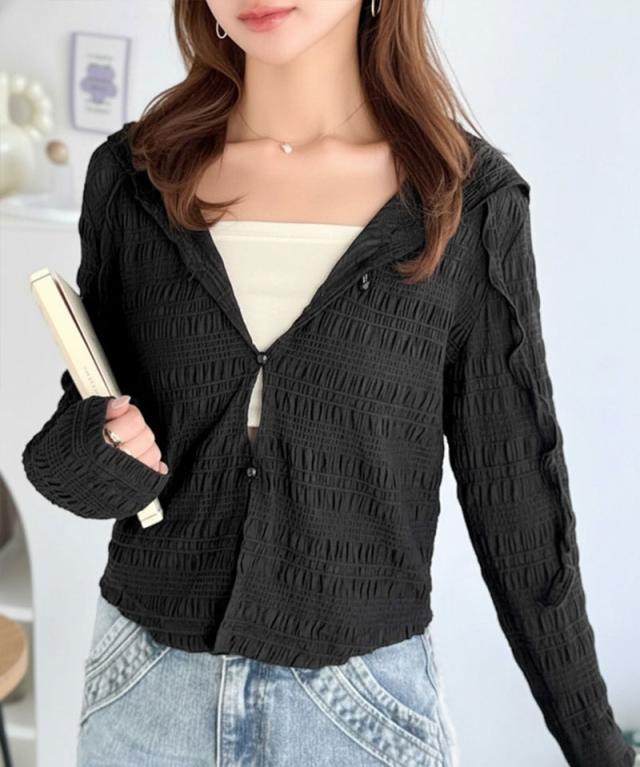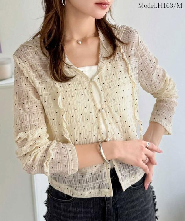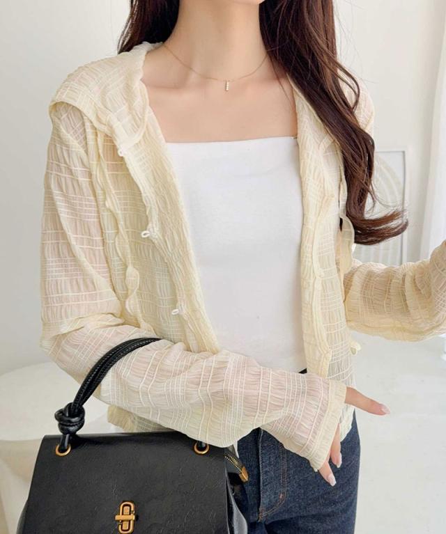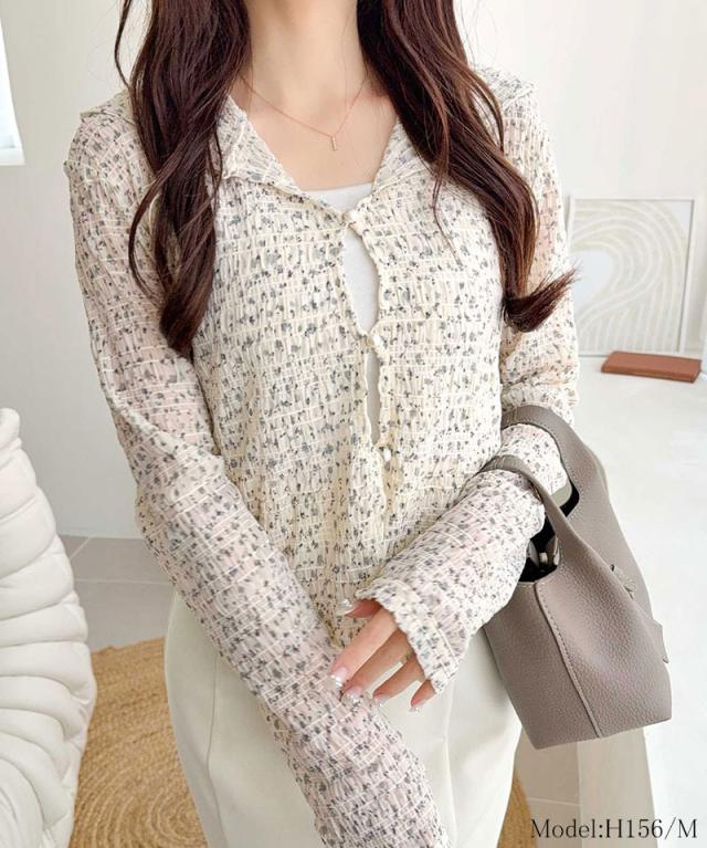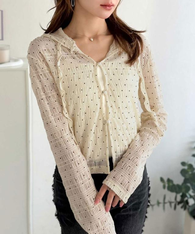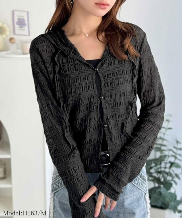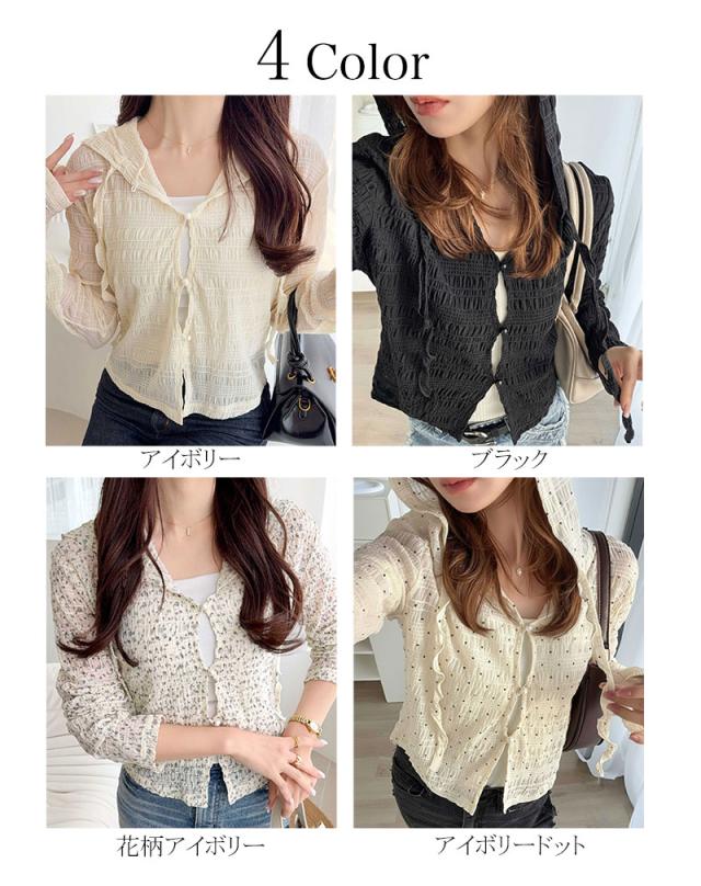 クラシカルエルフ春新作 mily bilet トップス カーディガン レディース シアー プルオーバー パーカー カジュアル きれいめ 清楚 上品 透け感 パール釦 メロー紐 フーディデザイン シアー素材 軽やか 可愛らしい 甘さ ラフ 大きいサイズ 黒 白 2026ss mi1359046