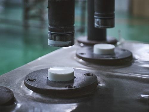 その後、真空状態にしながら、約90tの圧力で一気に押し固めます。このときにも水や熱を一切加えません。