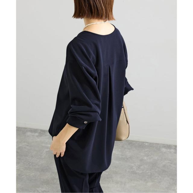 カットソーながら背中や袖口のデザインが入ることで、ブラウスのようなきれいめな印象に仕上がっています。