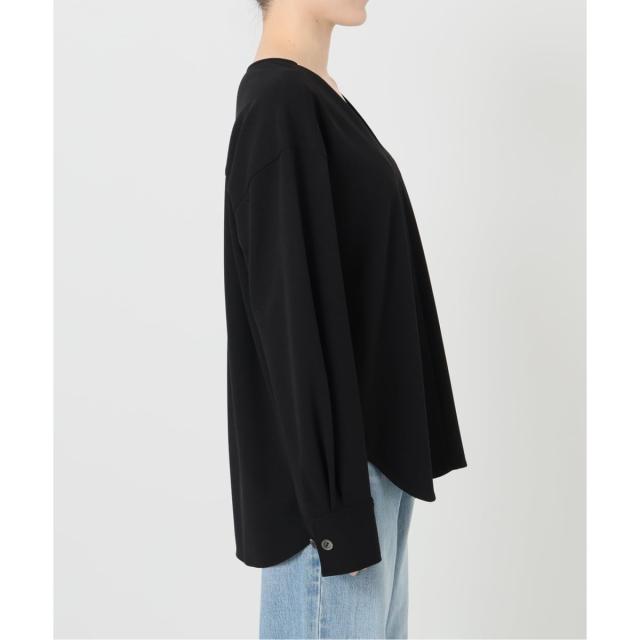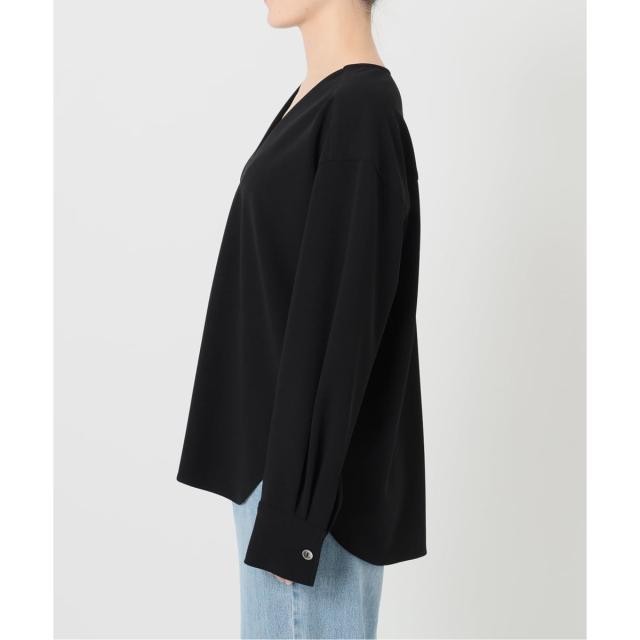 落ち感のあるカットジョーゼット素材を使用し、きれいめな表情と快適な着心地を両立したVネックプルオーバー。