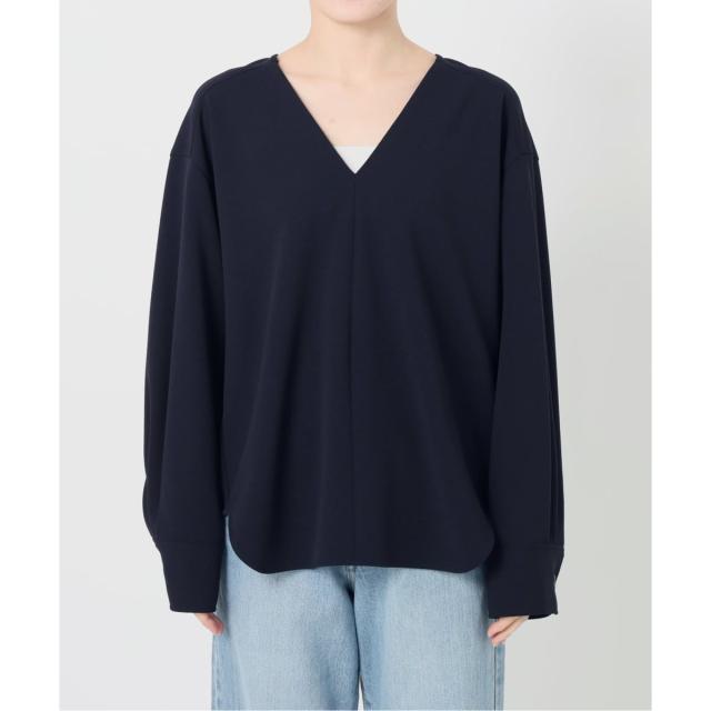 ほどよくゆとりのあるシルエットと、デコルテをすっきり見せるVネックラインが、1枚でもレイヤードでもバランス良く決まります。