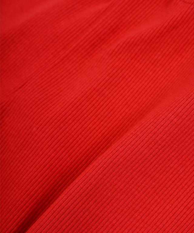 縦ラインを強調するリブ素材で脚まわりがきれいに見えます。