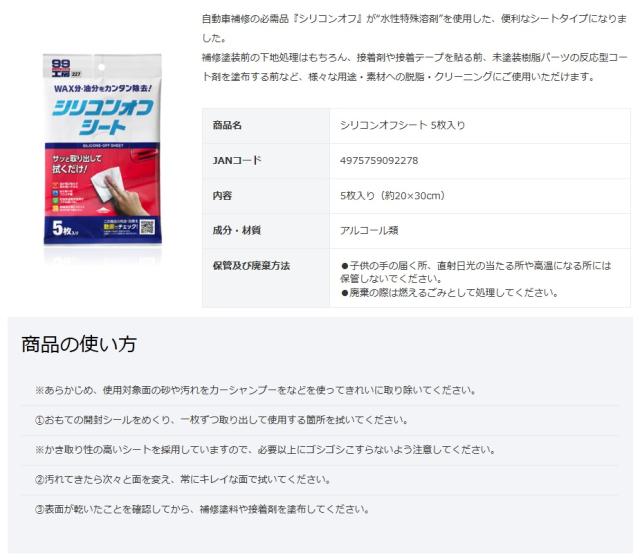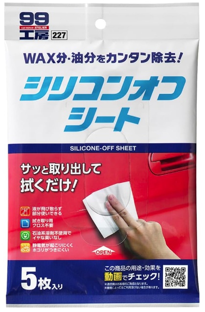 自動車補修の必需品『シリコンオフ』が“水性特殊溶剤”を使用した、便利なシートタイプになりました。