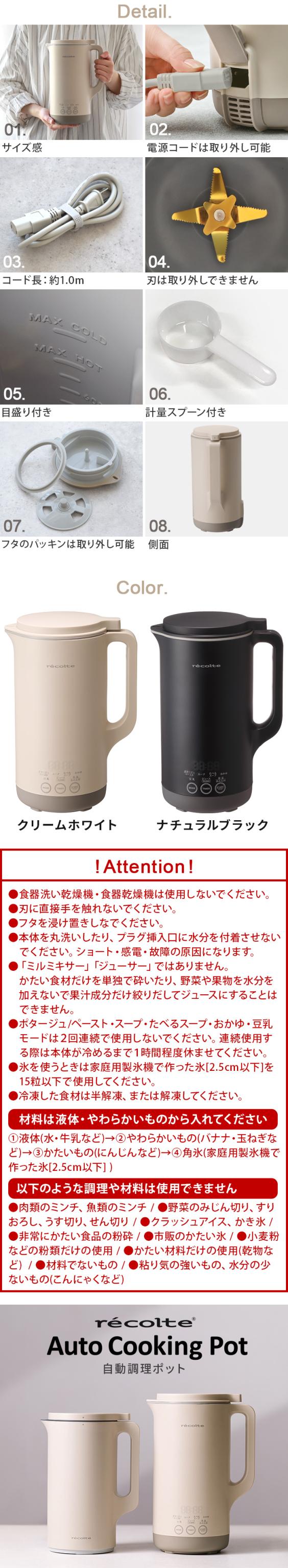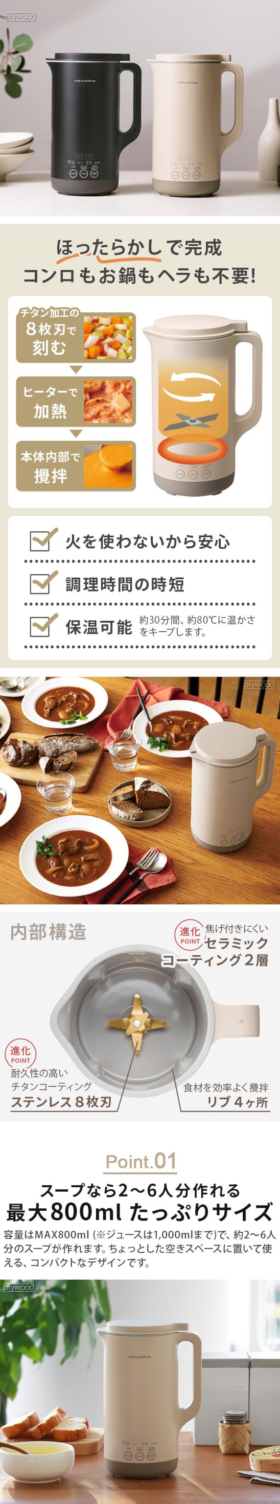 正規品【レシピ+特典付】レコルト 自動調理ポットラージ RSY-3 recolte Auto Cooking Pot Large 自動調理ラージ 自動調理 大容量 防水 電気 ミキサー ブレンダー 豆乳メーカー スープメーカー スープ スープジャー レシピ付 離乳食 介護食 豆乳機 保温 氷OK 送料無料 P10倍
